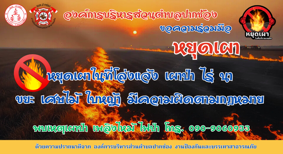 องค์การบริหารส่วนตำบลปากช่อง ขอความร่วมมือประชาชนทุกภาคส่วน ร่วมกันป้องกันและแก้ไขปัญหาไฟป่า หมอกควัน และฝุ่น PM 2.5